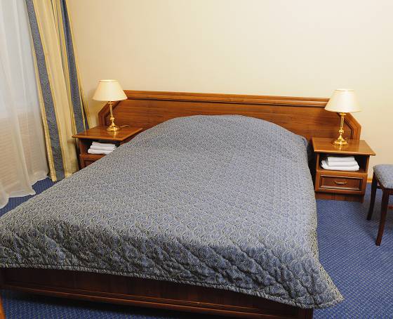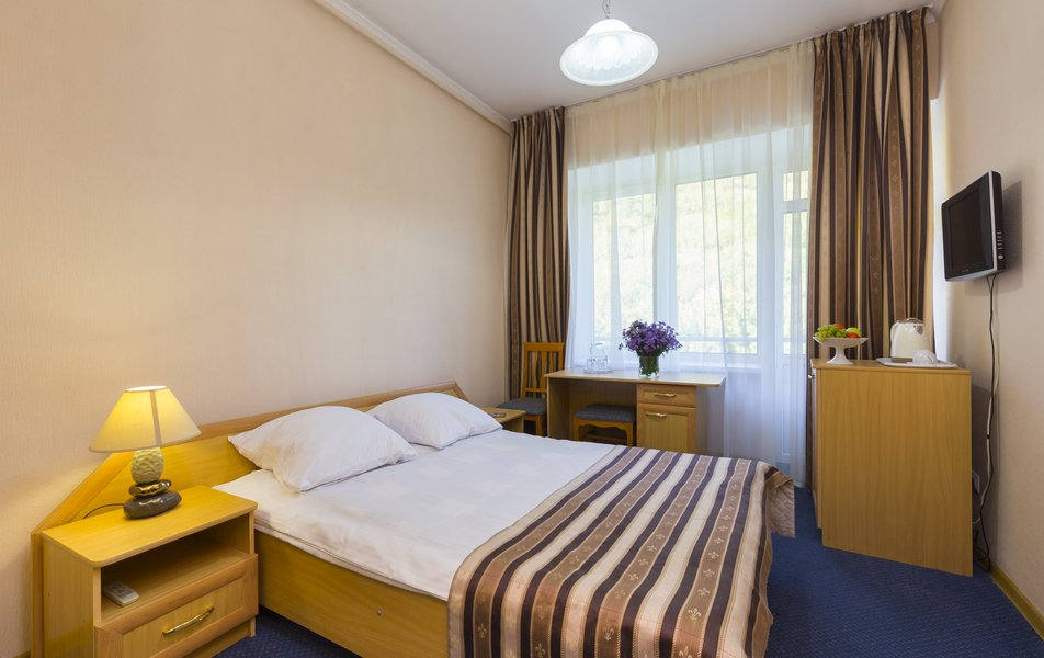 Санаторий состоит из двух корпусов, соединенных теплыми переходами. Номера разных категорий — от стандартных одно- и двухместных до люксов — оборудованы всем необходимым для комфортного проживания.